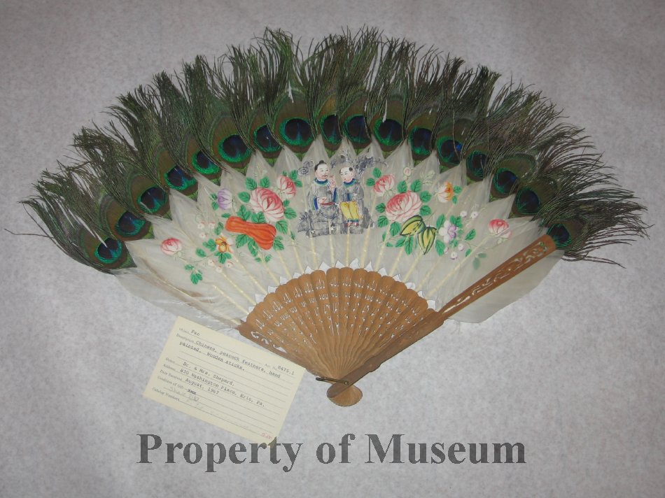 Donated by Dr. and Mrs. Shepard of Erie in 1867, this undated fan is a part of Chinese and Western Victorian cultures when fans were used in warm weather and for flirtatous behavior.